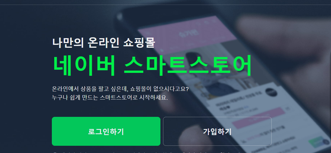 네이버 스마트스토어 센터에 들어가서 가입하기를 누릅니다. 네이버 아이디로 가입할 수 있습니다.