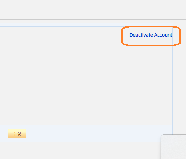 오른쪽 상단의 파란색의 Deactivate Account를 클릭합니다.
