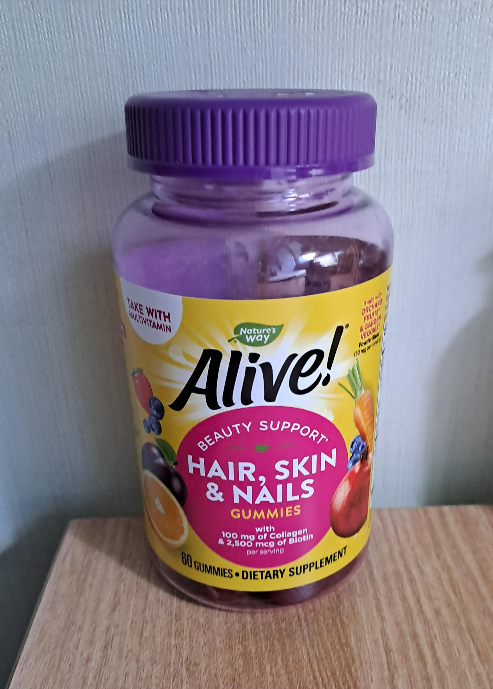 Nature's Way, Alive! 모발, 피부 및 손발톱을 위한 콜라겐 및 비오틴 함유, 딸기, 구미젤리 60개