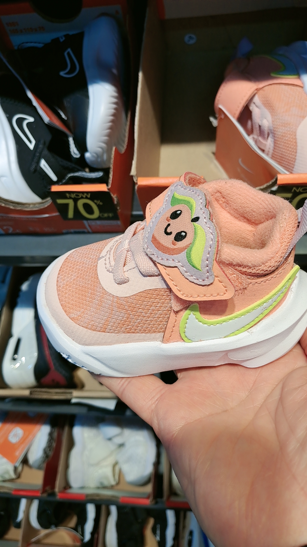 너무 귀여워서 찍었습니다. 이런 자그마한 신발들이 한쪽 벽면을 가득 채우고 있었습니다. 보면 70%세일이라고 되어있습니다. 쑥쑥 자랄지라도 이런 신발들 신기고 싶은 마음이 듭니다.