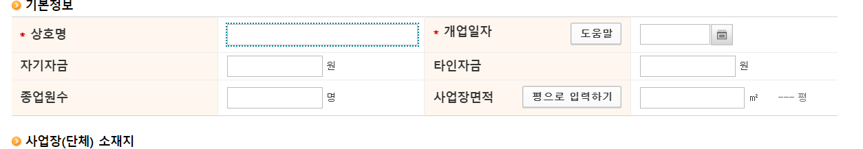 상호명을 입력하고 개업일자를 선택합니다. 상호명을 정할 때 시간이 좀 걸렸습니다.