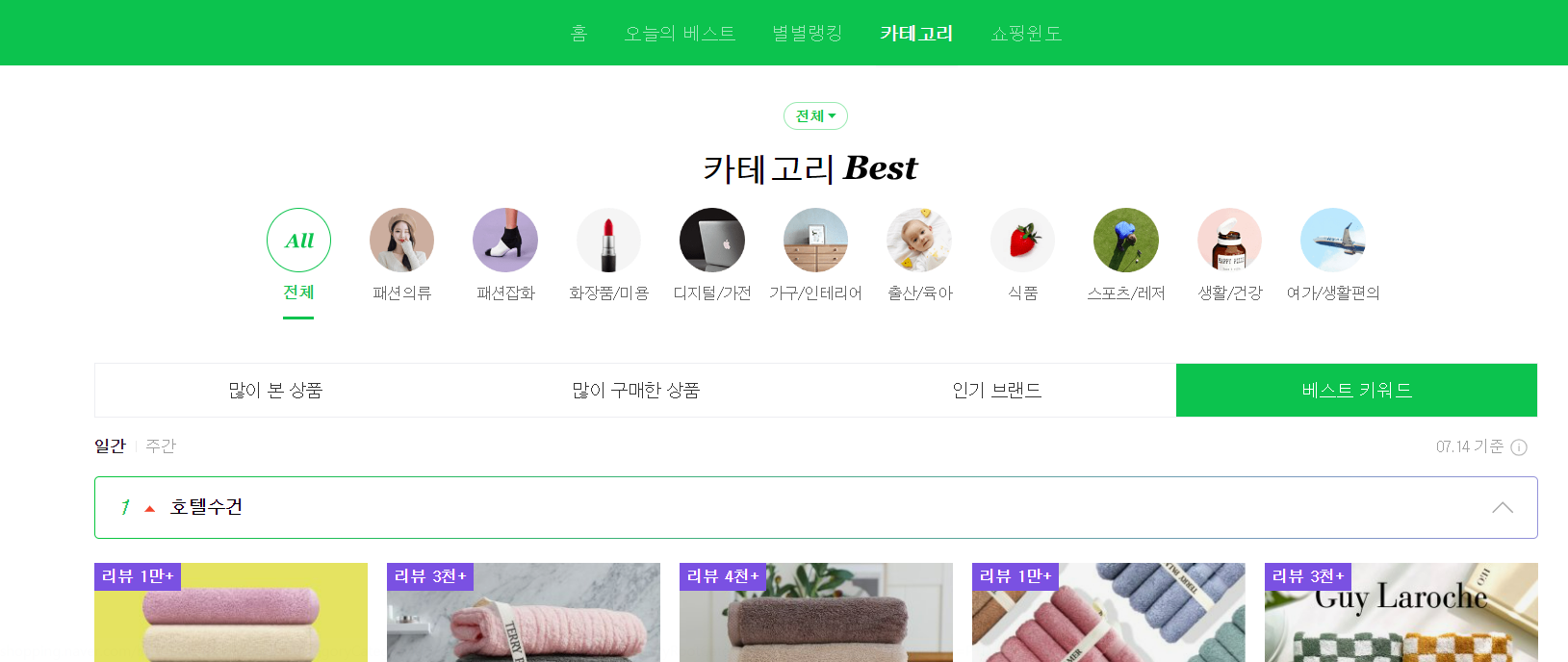 카테고리별로 베스트를 알 수 있습니다. 베스트 순위가 20까지 나와있습니다. 여기서 제품을 알아보고 도매꾹이나 도매매에서 제품을 알아볼 것입니다.