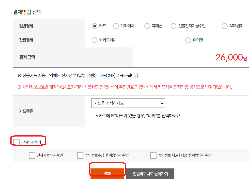 신청하기를 누르면 수수료 납부로 넘어갑니다. 수수료 납부 금액을 확인하고 아래로 내려가면 결제할 수 있도록 되어있습니다.