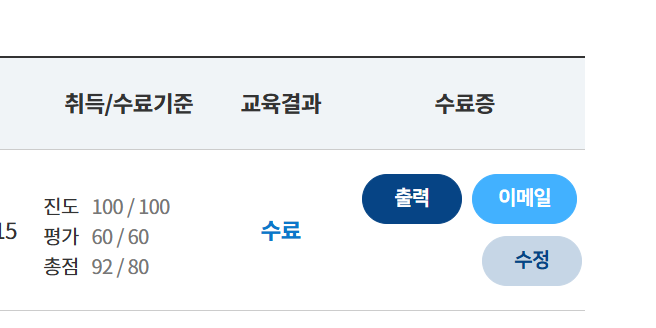 건강기능식품협회의 교육센터에 들어가서 나의 교육 수료증을 출력 또는 이메일로 전송해서 다운로드합니다. 저는 이메일로 전송해서 다운로드하고 PDF파일을 jpg로 변환하여 파일을 첨부하였습니다.
