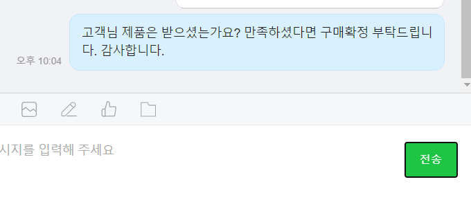 배송관련 메시지를 톡톡하기를 통해 보낸 후 구매확정에 관한 메시지를 톡톡하기를 통해 고객에게 전달하였습니다.