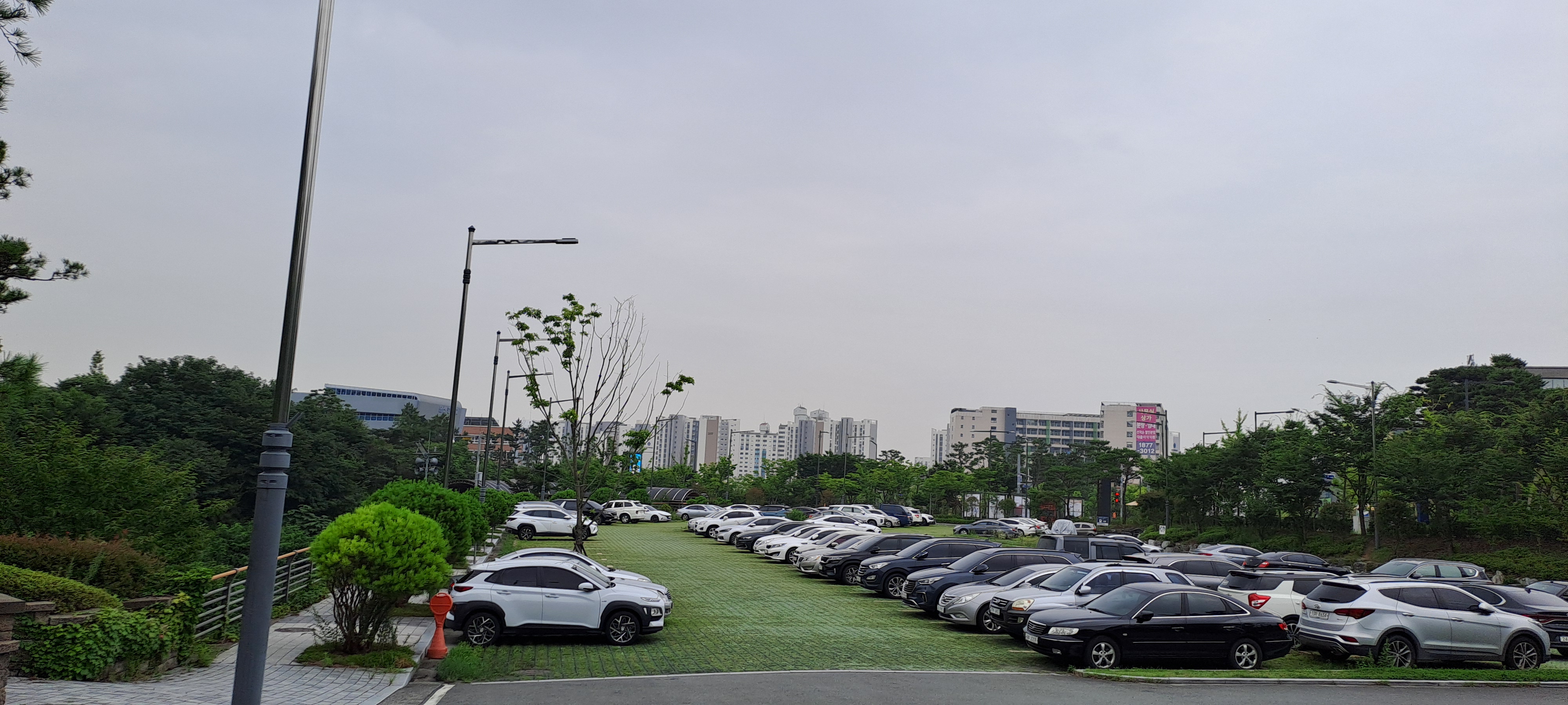 주차장은 상당히 넓습니다. 녹색의 잔디가 깔린 주차장이 보기 좋았습니다.