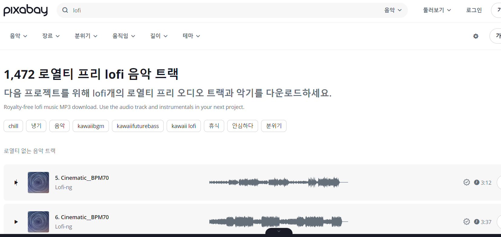 2. 픽사베이의 lofi음악 다운로드