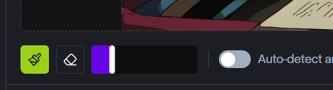 브러시의 크기는 보라색 부분을 당기거나 밀어서 조정할 수 있고 옆의 지우개로 지울 수 있습니다.