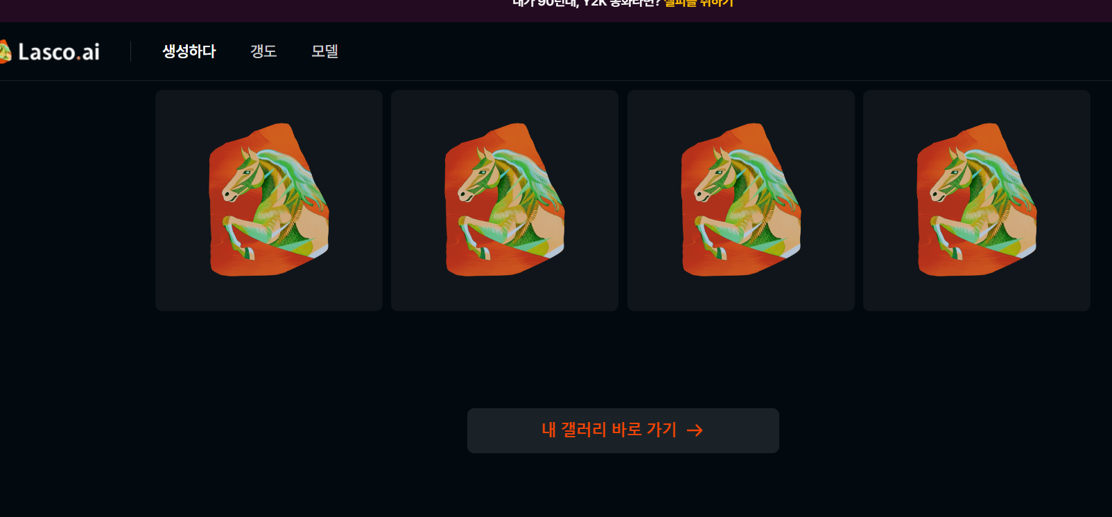영문으로 Generate 또는 한글로 생성하다를 누르면 아래와 같이 말모양의 그림이 회색으로 붉은색으로 바뀌어가며 그림을 만들어 냅니다.