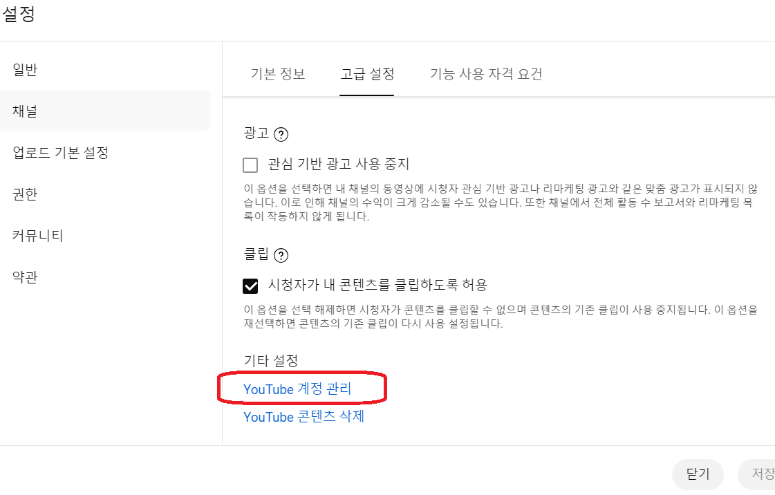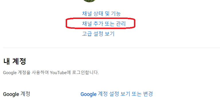 - 아래로 스크롤하여 YouTube 계정 관리를 클릭합니다.