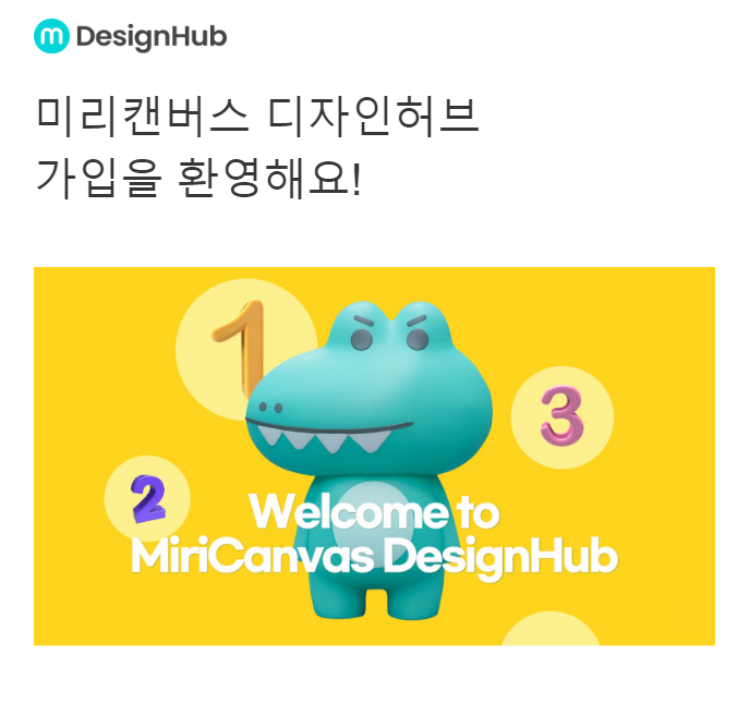 3.이메일 인증을 합니다. 바로 콘텐츠를 올릴 수 있습니다. 또한 미리캔버스에서 가입 환영 메일이 옵니다.