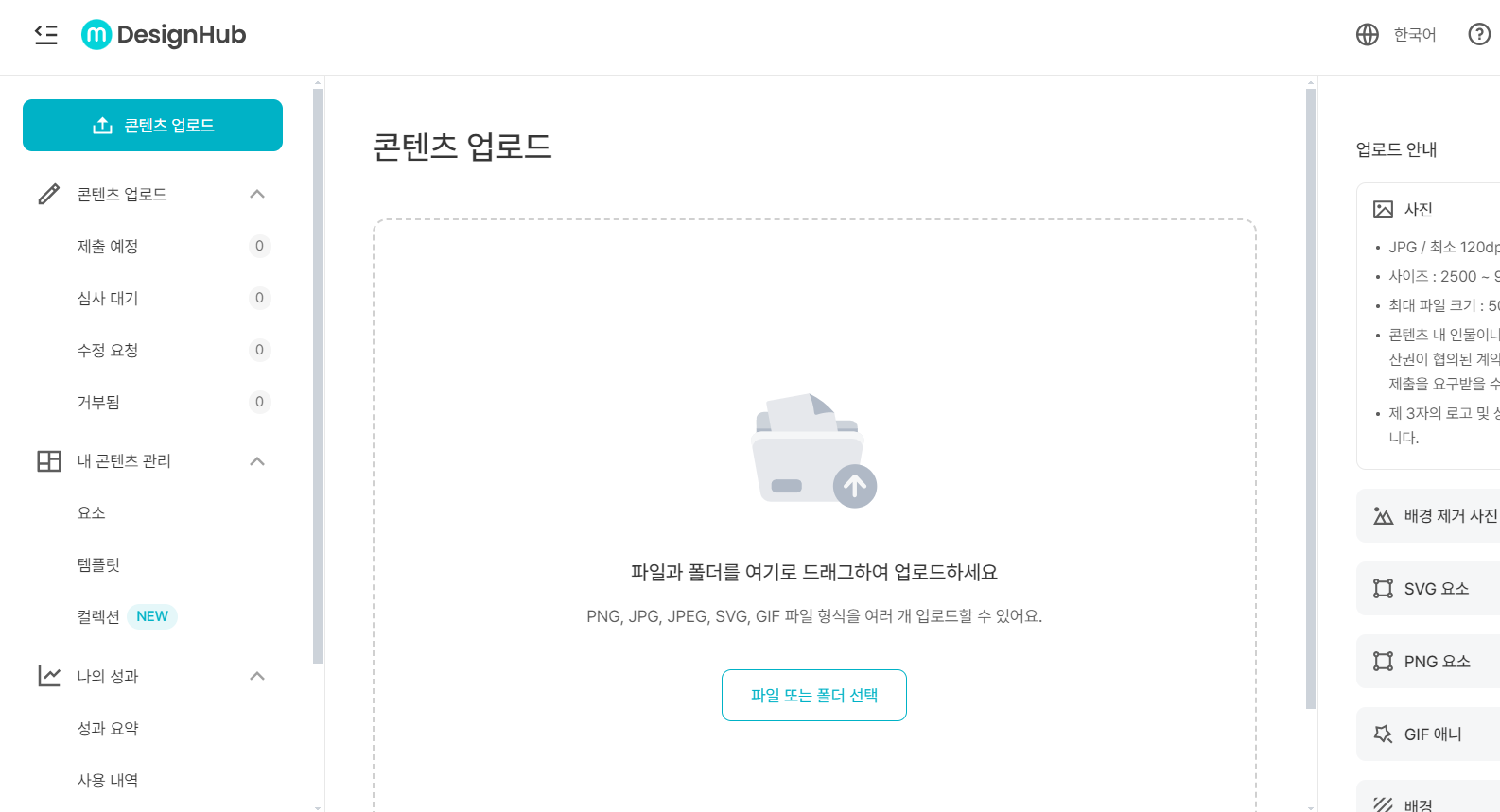 4. 콘텐츠를 업로드합니다. 원하는 사진이나 그림을 드래그하여 바로 업로드 할 수 있습니다.