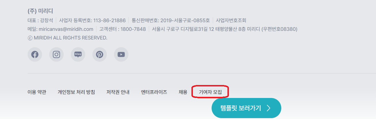1. 미리캔버스의 화면 맨 하단의 기여자 모집을 클릭합니다.