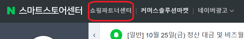 스마트스토어센터에서 상단 메뉴 중에 쇼핑파트너센터를 클릭합니다.