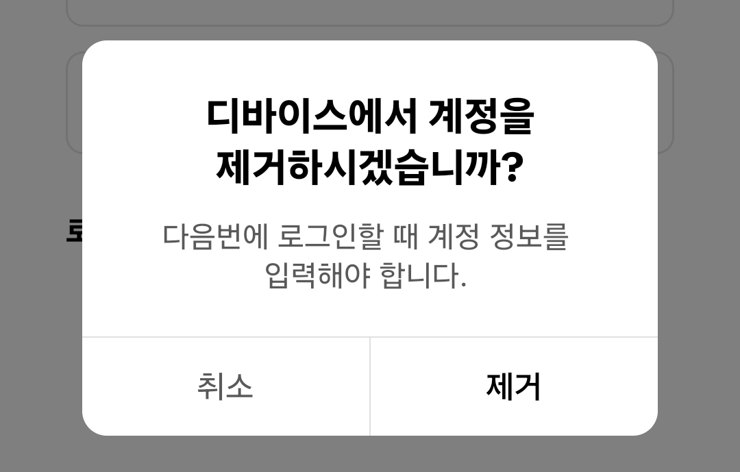 처음에는 로그아웃되어 있다는 글이 떴습니다. 계정을 삭제를 해야 했습니다.