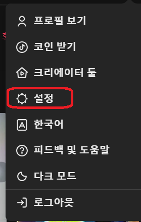 프로필에 들어가 오른쪽 상단의 가로로 발바닥 옆 가로로 세 줄인 곳을 클릭하면 아래에 톱니바퀴 옆에 설정 및 개인 정보가 있습니다.