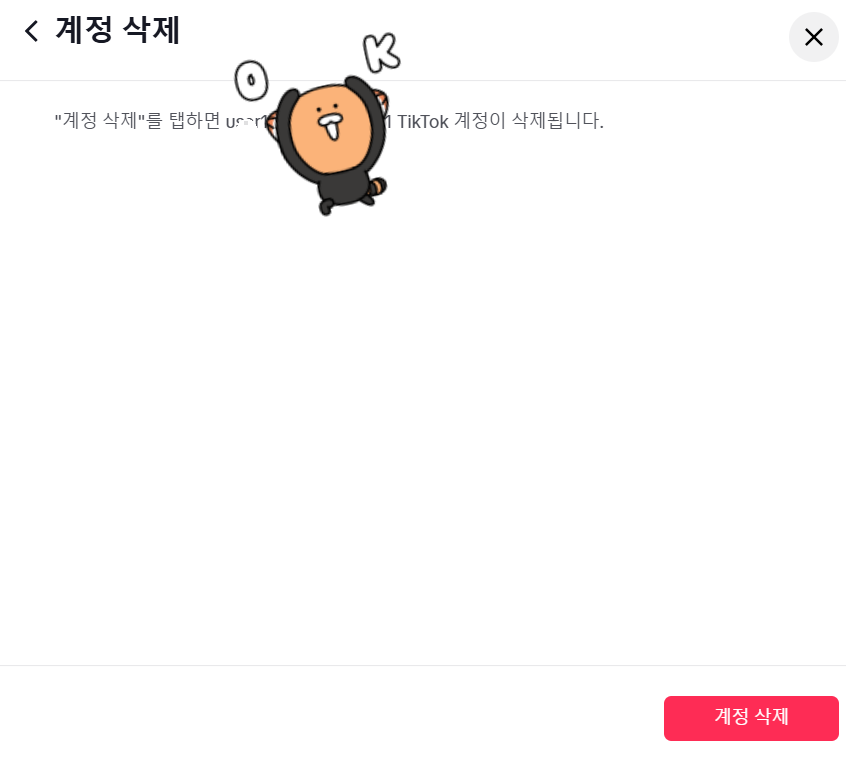 이것을 두세번 반복해도 마지막 틱톡계정과 연결되어있지 않다는 문구만 뜨고 결국 계정을 삭제할 수가 없었습니다.