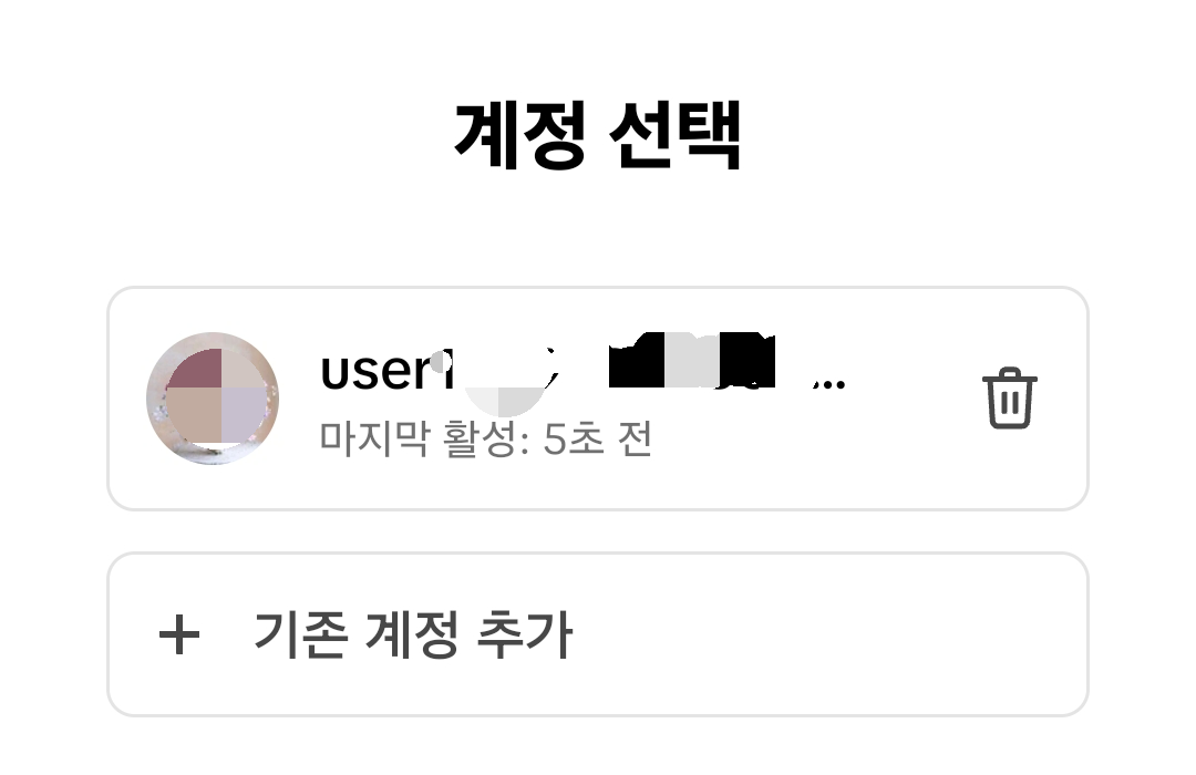 처음에는 로그아웃되어 있다는 글이 떴습니다. 계정을 삭제를 해야 했습니다.