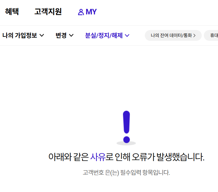 그런데 저는 이런 문구만 뜨고 진행을 할 수가 없었습니다. 아마도 핸드폰 통신사를 변경해서인 것 같습니다.