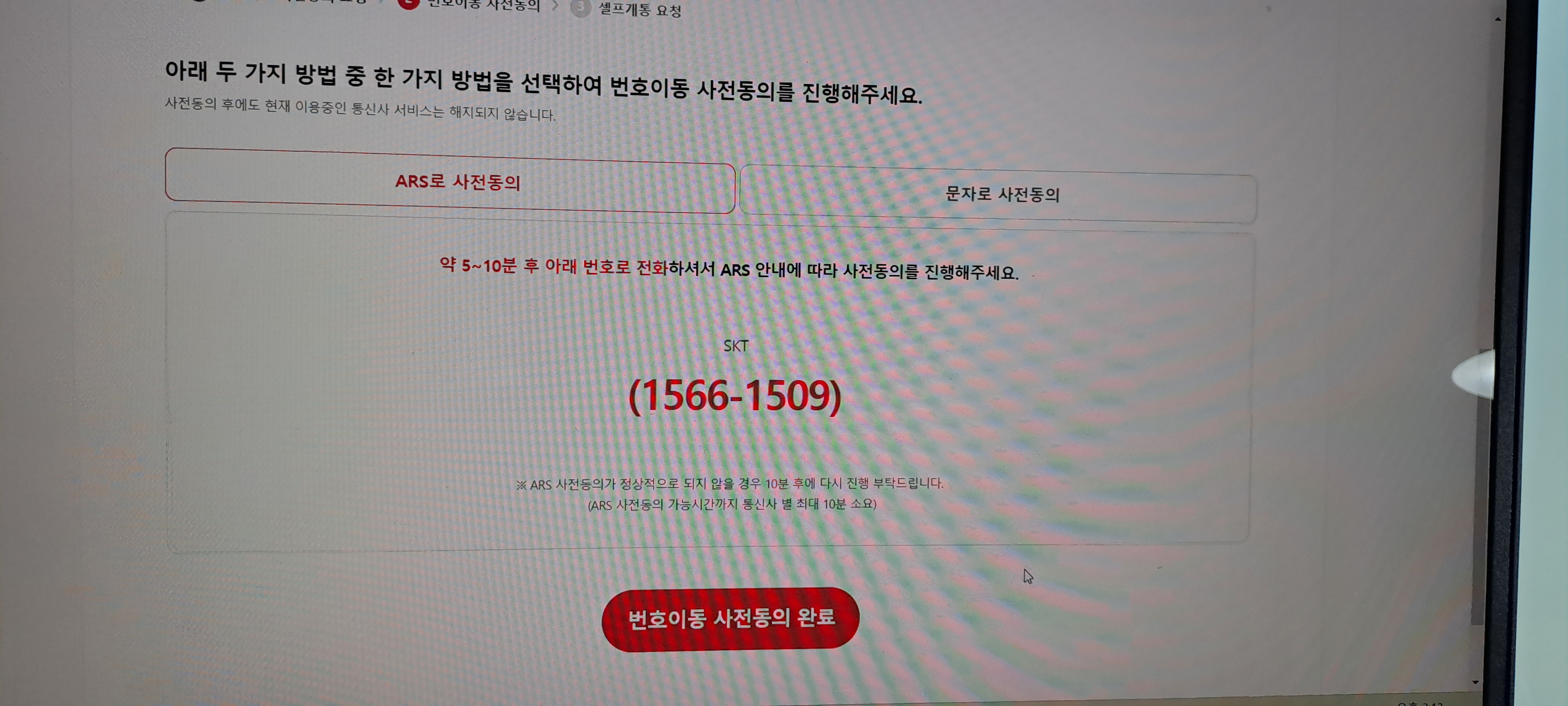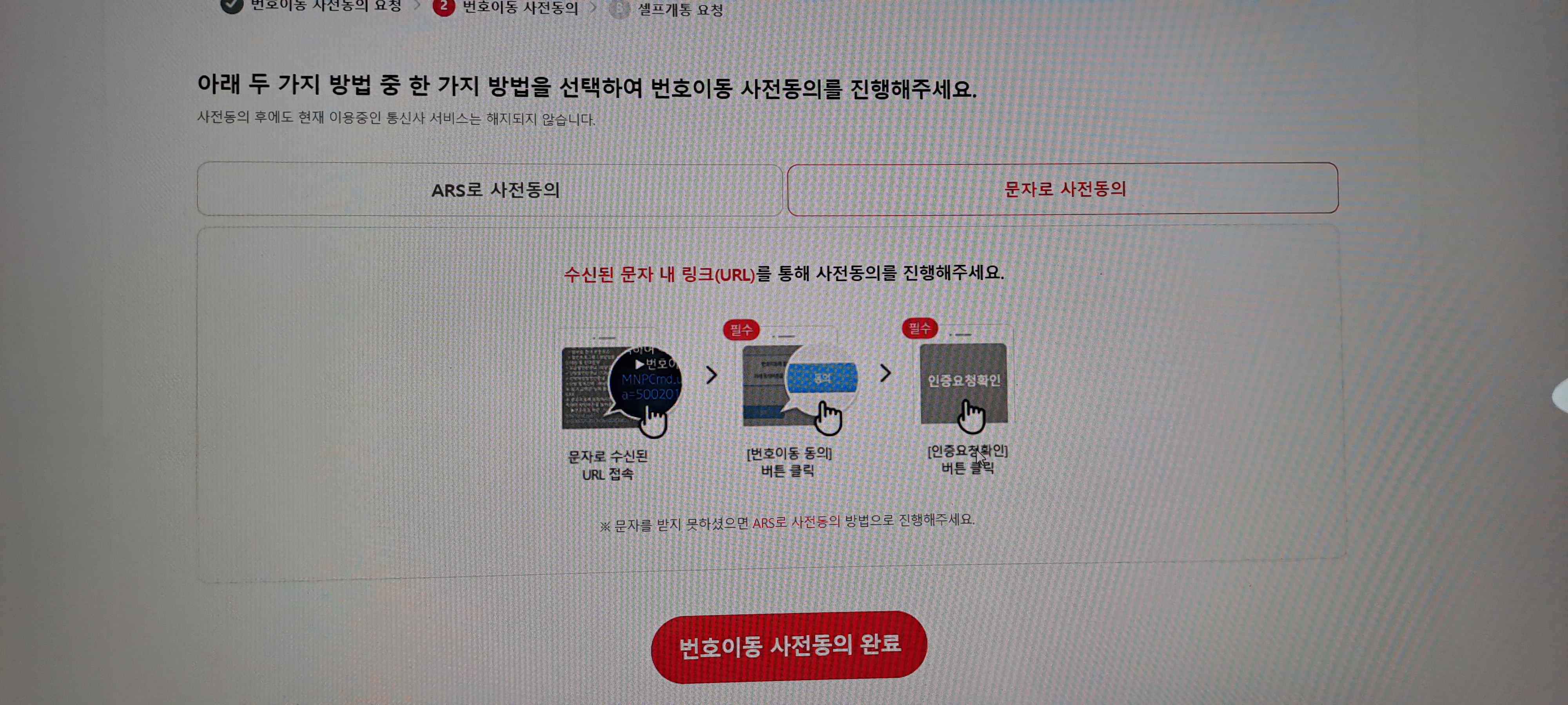 ARS나 문자로 사전 동의를 완료하면 셀프개통이 됩니다.