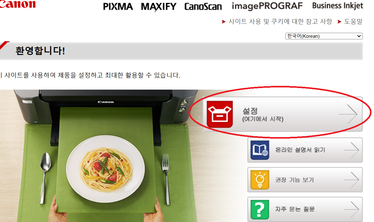 7. 해당 프린터를 처음 설치한 순서대로 다시 설치를 시작합니다. 저는 캐논프린터라 https://canon.com/ijsetup을 입력하고 들어갔습니다.
