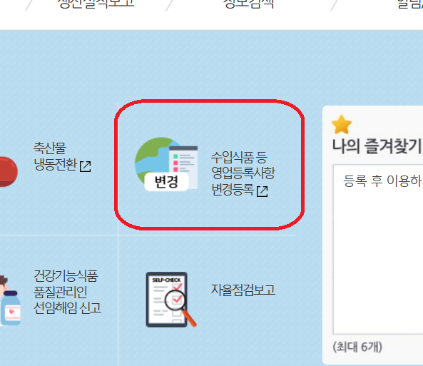 수입식품 등 영업등록사항 변경등록을 클릭합니다.