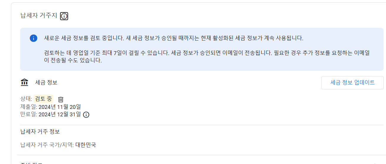 | 애드센스 세금정보 업데이트 납세자 거주지 증명서 발급받기 (0) | 2025.06.12 |
