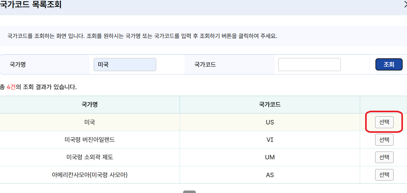 클릭하면 이름과 전화번호, 주소 등이 자동으로 입력되어 있습니다. 다른 것은 손대지 않고 발급 국가에만 코드 검색을 눌러 구글이 있는 미국 US를 선택하였습니다.