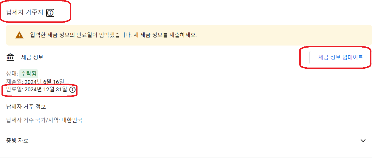 구글 애드센스 세금 정보 만료 새 양식 제출하기