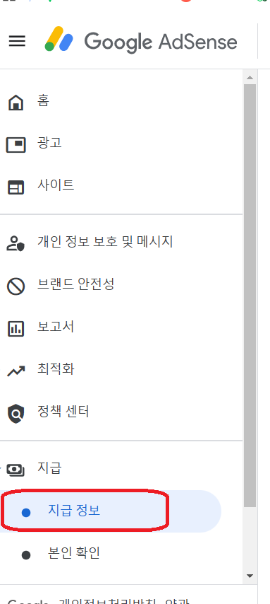 왼쪽 메뉴에서 지급-> 지급정보를 클릭합니다.