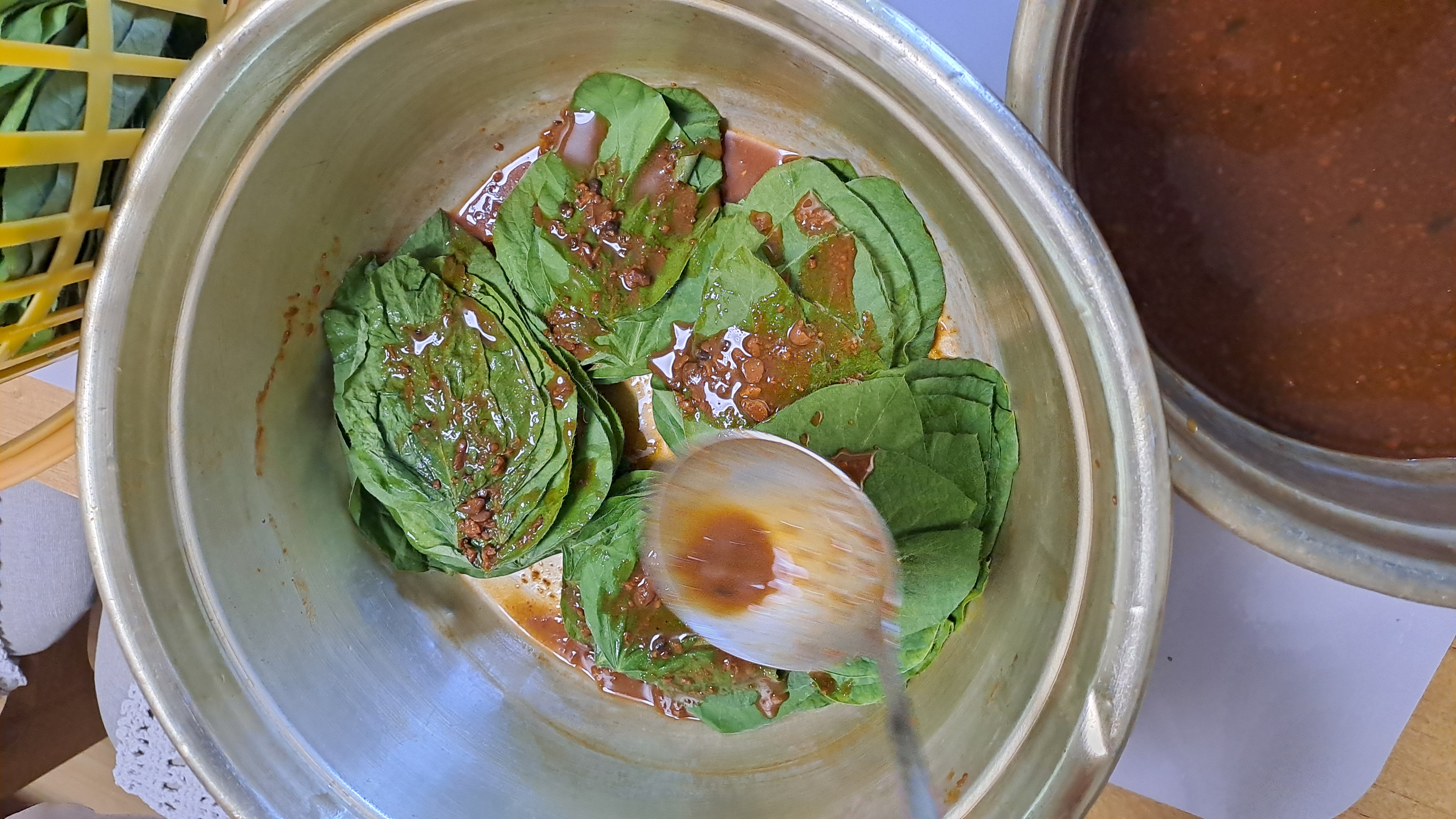절일 양념은 시판 간장을 쓰시지 않으시는 어머니시기에 직접 담그신 조선간장, 매실액, 된장을 적당히 섞으셨습니다.