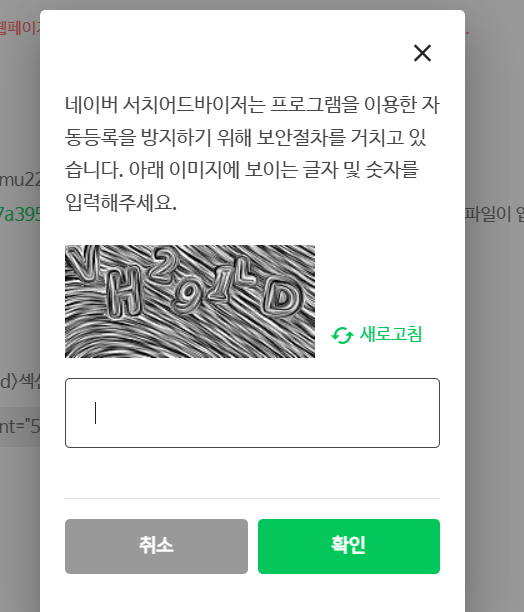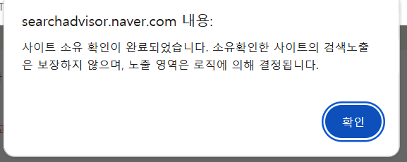 다시 네이버 서치어드바이저로 돌아와서 소유권 확인을 누르니 보안 절차가 진행됩니다. 입력하고 나니 사이트 소유 확인이 완료되었다는 메시지가 떴습니다. "휴~~ 다행이다! "했습니다.