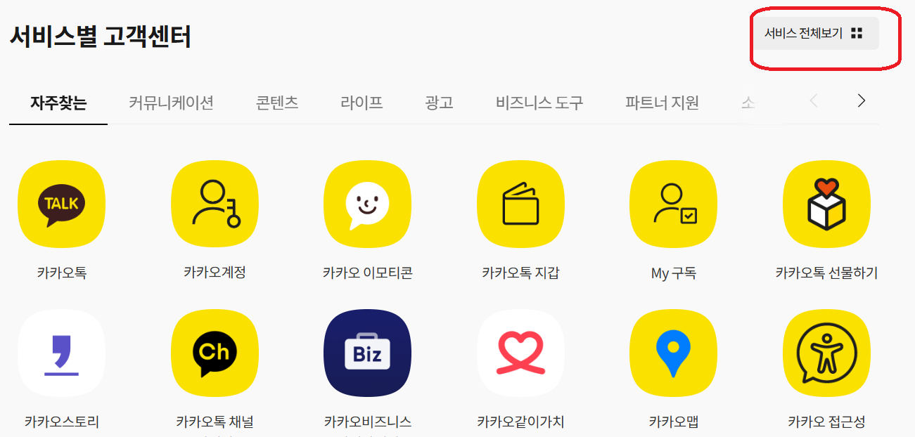 오른쪽 상단의 서비스 전체보기를 클릭합니다.
