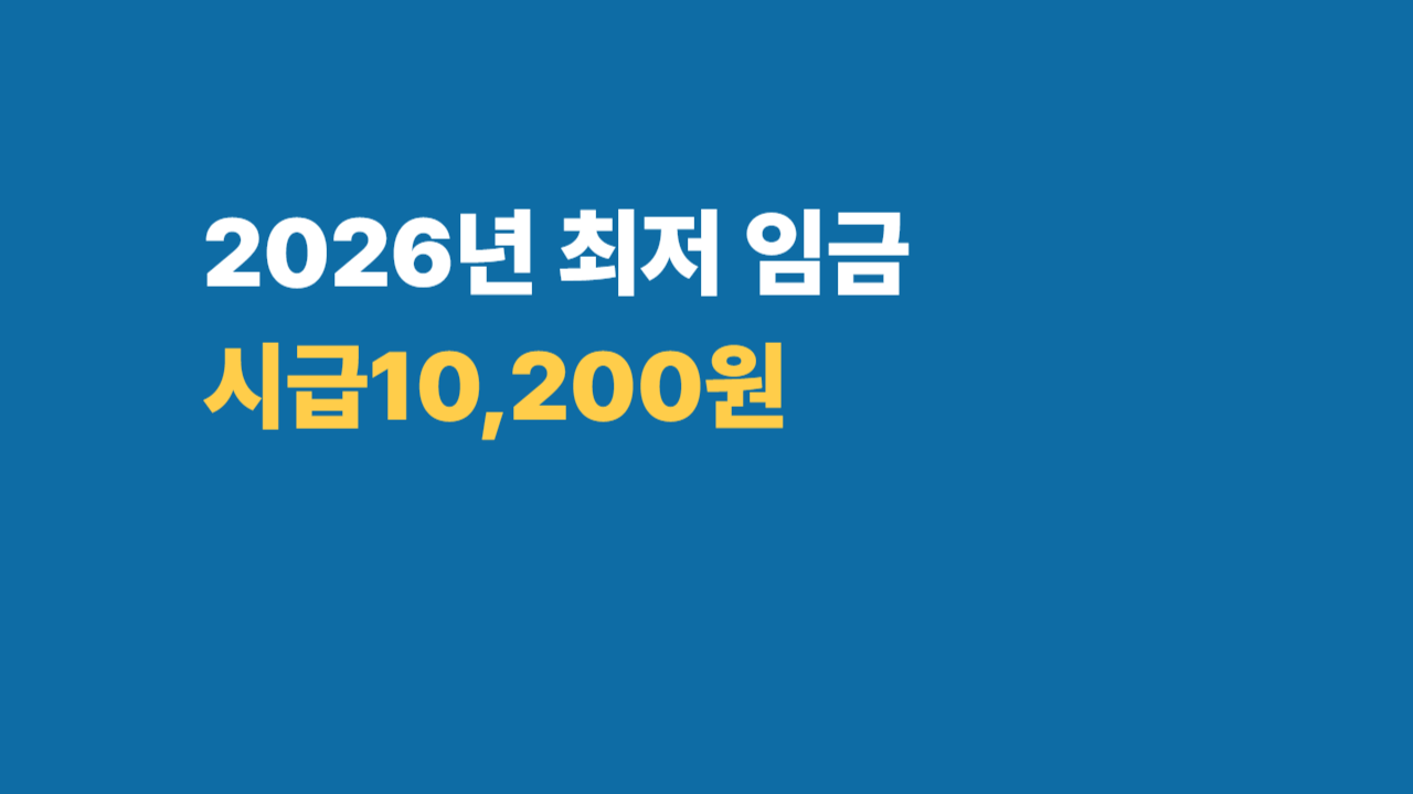 - 2026년 적용되는 최저시급은 2025년(10,030원)보다 1.7% 인상된 10,200원입니다.