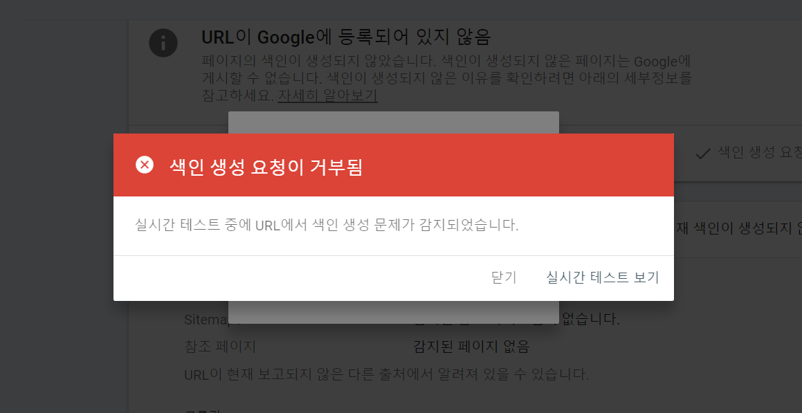 색인 생성 요청이 거부됨 여러 번 요청하였지만, 해결이 안 되었다. 구글에 검색하여 방법을 검색해 보았지만, 결론은 기다리는 수 밖에 없다는 것이다. 사진이 많아서일까? 일단 내가 보기에 수정할 것도 없고 해서 좀 더 기다렸다 시도해 보기로 하였다.