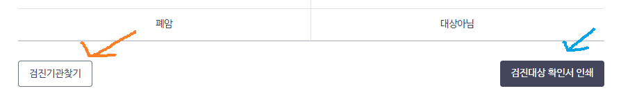 하단 오른쪽에 검진대상 확인서 인쇄 버튼이 있습니다. 인쇄한 뒤 신분증지참하여 검진 기관에 방문하면 됩니다.