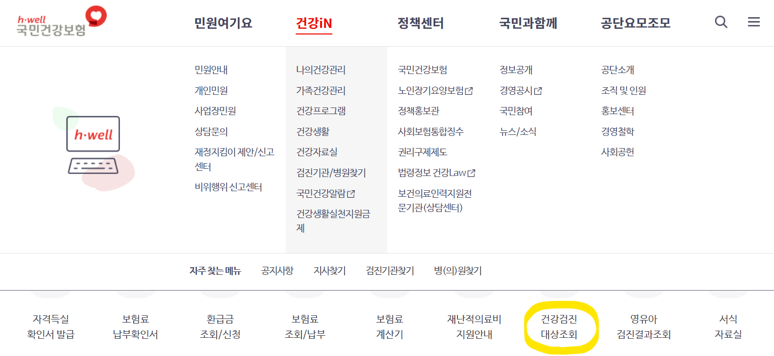 다시 홈페이지의 건강검진 조회를 클릭합니다.