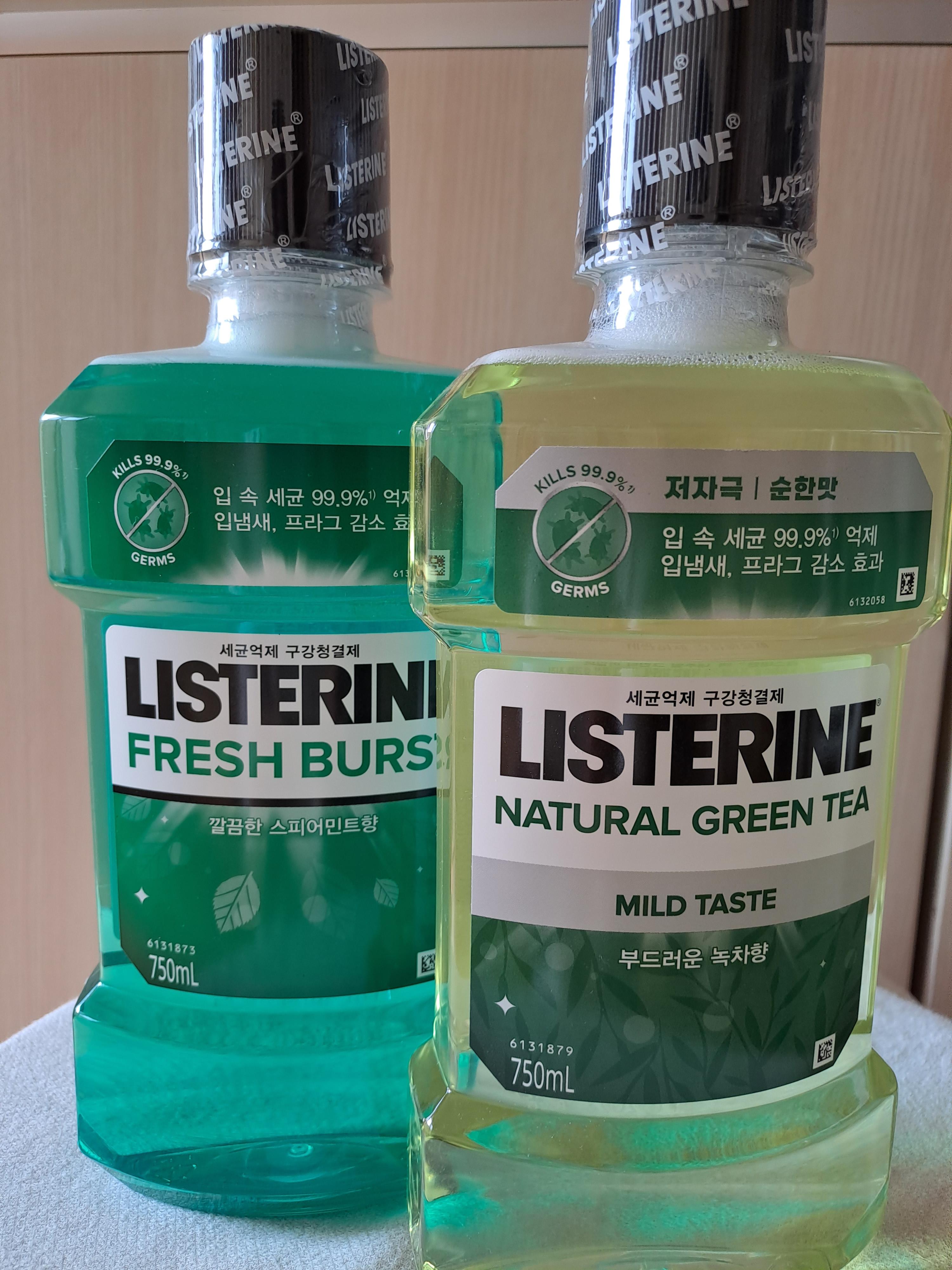 순한 맛(약한 맛)의 리스테린 제품으로는 쿨민트 마일드, 검케어 마일드, 토털케어 마일드, 내츄럴 그린티 마일드, 토탈케어 캐비티케어 마일드(2023년 8월에 새로 출시되었으며, 불소 흡수율을 향상한 제품으로 토털케어 제품군 중에 충치예방 효과에 특화)가 있습니다.