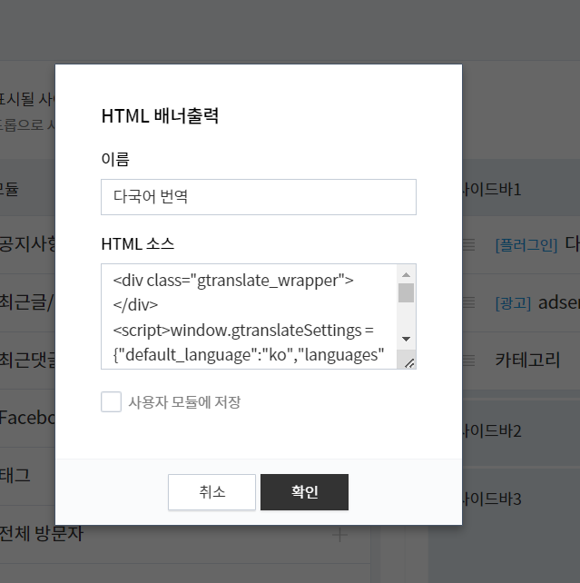 이렇게 해서 내 블로그 글에 번역기 위젯 설치를 할 수 있습니다.